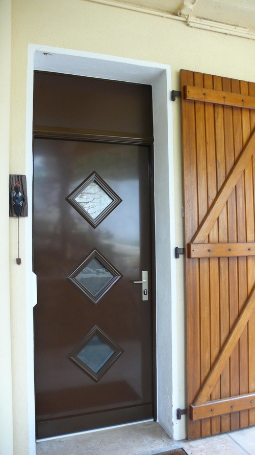 PORTE DE MAISON SECURISEE , Version aluminium isolante , avec ou sans vitrage .